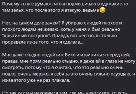 Участница телепроекта «Дом-2» Клава Безверхова выразила сожаление по поводу своих действий, назвав их некрасивыми и ошибочными.