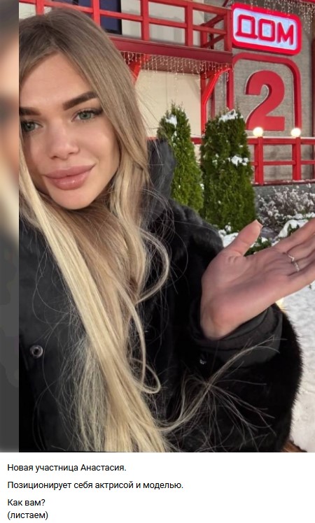 В телепроекте «Дом-2» произошло пополнение — в шоу пришла новая участница по имени Анастасия. Девушка заявила, что её главная цель — найти настоящую любовь. При этом Анастасия утверждает, что не стремится к публичности, хотя уже сейчас вокруг неё достаточно внимания.