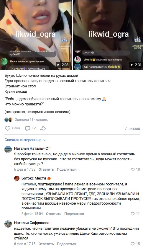 Её избранник в настоящее время проходит курс реабилитации в одном из столичных военных госпиталей после получения ранения на передовой линии обороны. После бурной вечеринки, о подробностях которой эксцентричная Черно подробно рассказала своим многочисленным подписчикам в прямом эфире, состоялась их первая живая встреча лицом к лицу. Александра, не скрывая волнения, отправилась к возлюбленному на такси, тщательно продумав свой образ и прихватив с собой небольшой подарок в качестве знака внимания.