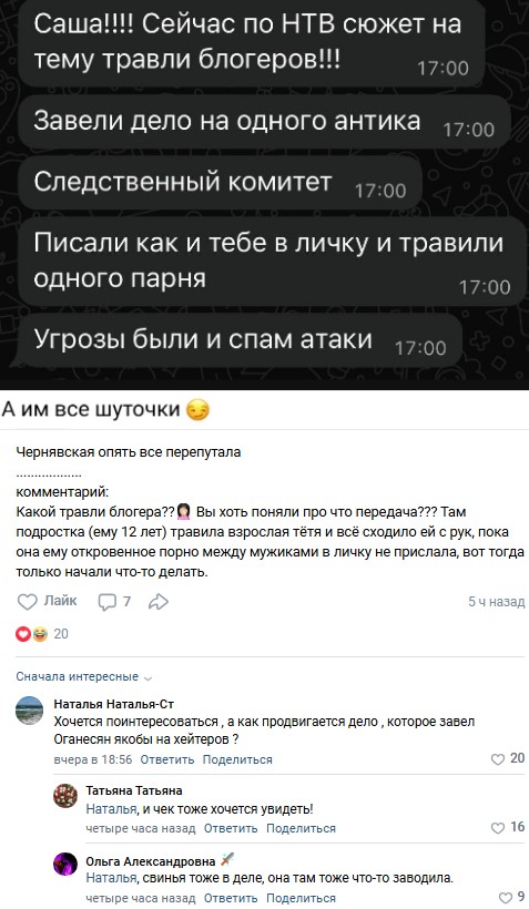 Бывшей участнице дома 2 Саше Черно сообщили хорошие новости. Одна из подписчиц обратила внимание Александры на сюжет, показанный на федеральном канале НТВ. В нем рассказывалось о блогере, который стал жертвой регулярной травли антифаната.