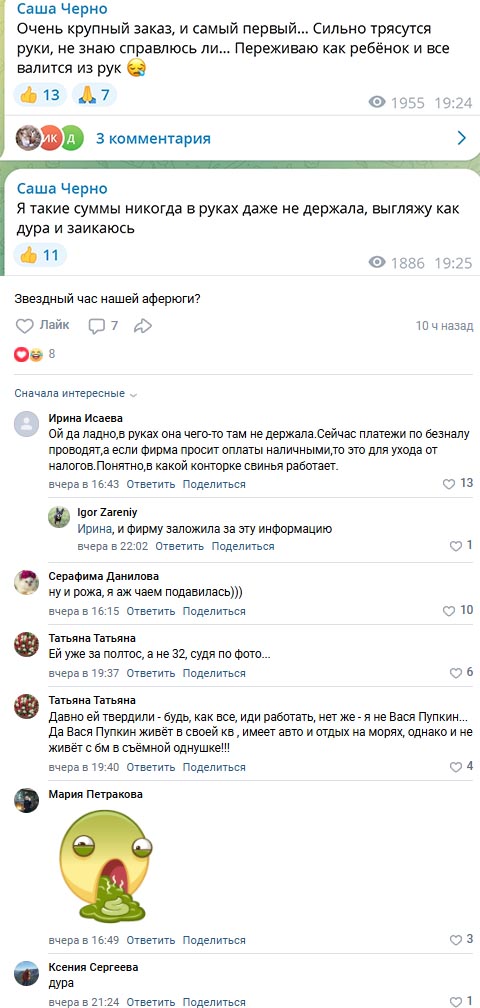 Непросто приходится Саше Черно, решившей сменить блогерство на обычную работу. Фолловерам Александра уже сообщила, что теперь будет трудиться в обычном офисе в сфере продаж. Правда верит, что это только начало ее головокружительной карьеры.