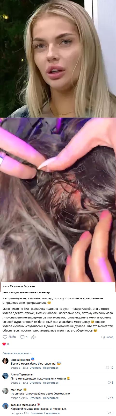 Бывшая участница популярного телепроекта Екатерина Скалон всерьёз обеспокоила своих подписчиков в социальных сетях. Девушка опубликовала фотографии, на которых видна её окровавленная голова, что вызвало волну переживаний среди фолловеров. В своих дальнейших сообщениях Екатерина постаралась подробно объяснить, как произошёл несчастный случай.