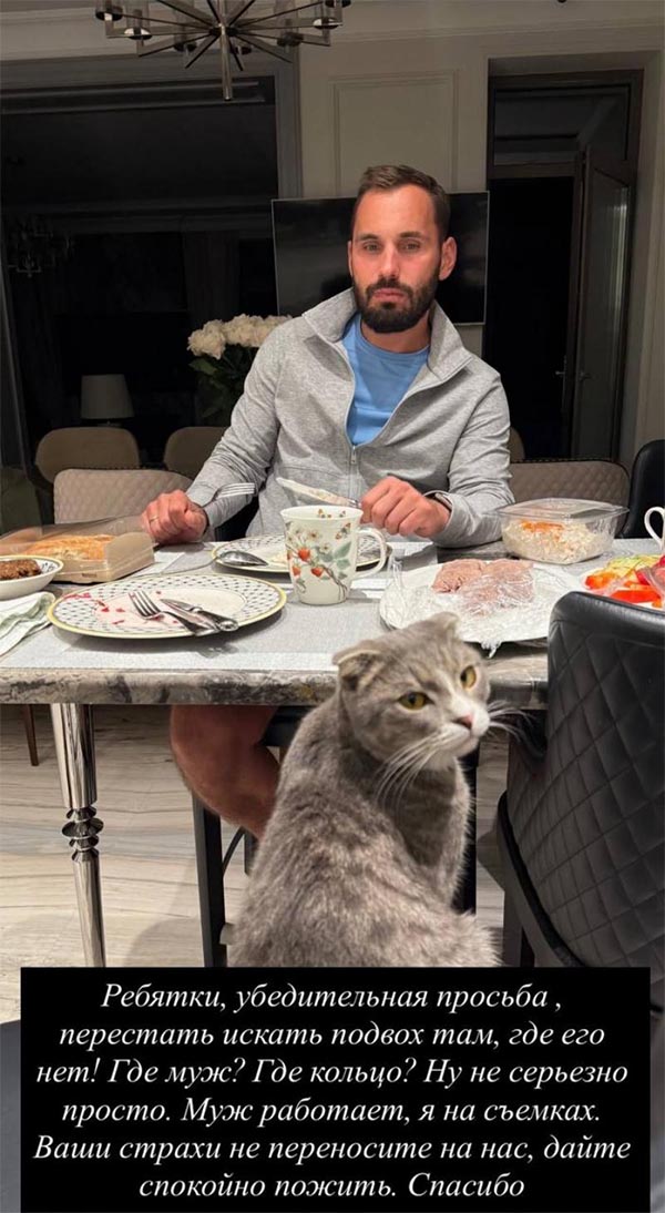 Впрочем радость хейтеров на этот счет оказалась преждевременной. Накануне Бородина не просто ответила на неудобные вопросы о кольце и муже, но и показала последнего у себя в сторис во время семейного ужина.