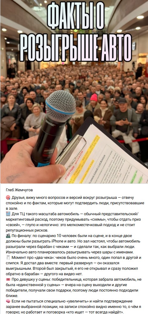 Многие люди, которые стали свидетелями мероприятия, выражают серьёзные сомнения в честности проведённого розыгрыша. Они считают, что победительница, получившая главный приз — автомобиль, была «подставной» персоной. Существует множество деталей, которые, по мнению публики, указывают на обман. Сам Глеб, будучи выпускником «Дома-2», настаивает на том, что организаторам торгового центра невыгодно заниматься мошенничеством.