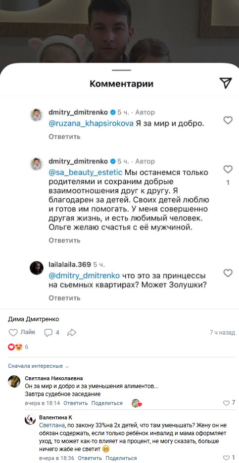 Ответ Дмитрия Дмитренко на вопросы подписчиков оказался весьма неожиданным для многих. Он подтвердил, что действительно встретился с детьми и с бывшей супругой. По словам экс-участника «Дома-2», эта встреча оказалась полезной для всех сторон. Дмитрий утверждает, что отношения с Ольгой теперь наладились, и они смогли стать добрыми друзьями, несмотря на все прошлые разногласия.