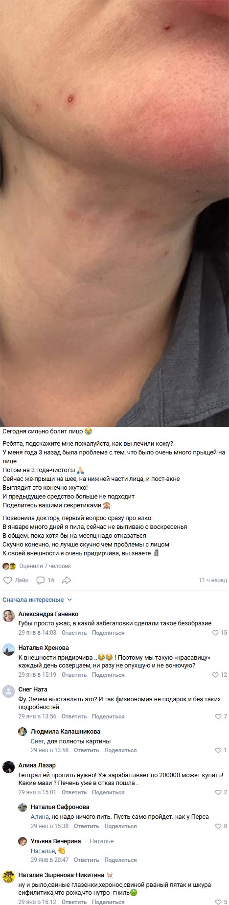 Реакция пользователей социальных сетей не заставила себя долго ждать. Многие из них не удержались от того, чтобы высказать свои предположения о причинах проблем с кожей у Саши. Некоторые уверены, что виной всему стали новогодние праздники и чрезмерное употребление алкоголя. По мнению пользователей, Черно сейчас нужно не столько лечить лицо, сколько заняться очищением печени.