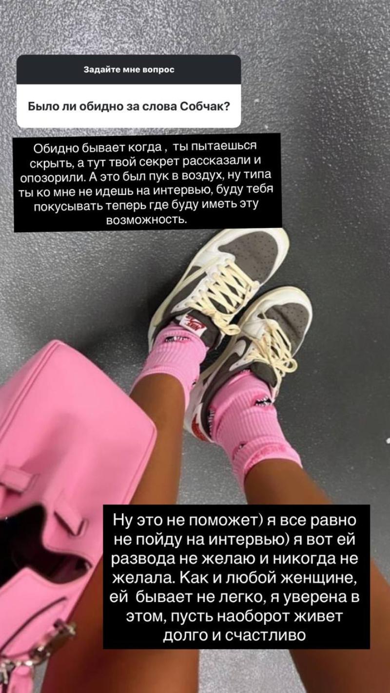 По словам Бородиной, которая в данный момент наслаждается отпуском вместе с мужем, высказывания Собчак её нисколько не задевают. Телеведущая считает, что подобные выпады — это всего лишь реакция на её отказ дать интервью Собчак. Бородина уверена, что в словах её оппонентки нет ничего серьёзного, и характеризует их как пустые и бессмысленные.