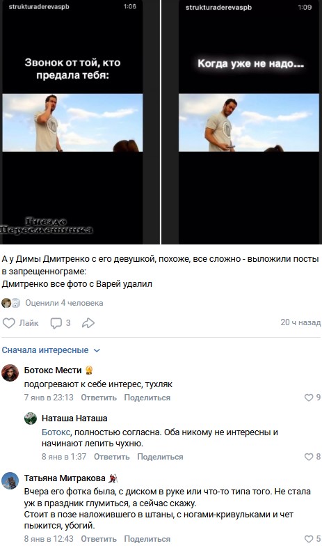 Вдаваться в подробности Дима не стал, ограничившись сухим набором фраз в социальных сетях. Правда судя по его постам кажется, что его теперь уже бывшая девушка пыталась наладить отношения. Вот только сам Дима уверяет, что уже слишком поздно - он успел остыть к своей некогда большой любви.