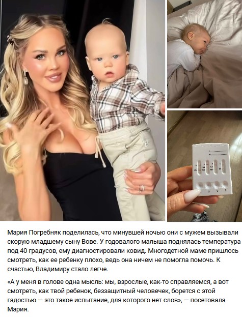 Мария Погребняк поделилась с фолловерами не самыми хорошими новостями. Многие переживают, что годовалому сыну многодетной мамочки и по совместительству крестнику Ольги Бузовой диагностировали ковид. Дошло до того, что не выдержав страданий сына Погребняк вызвала сыну скорую.
