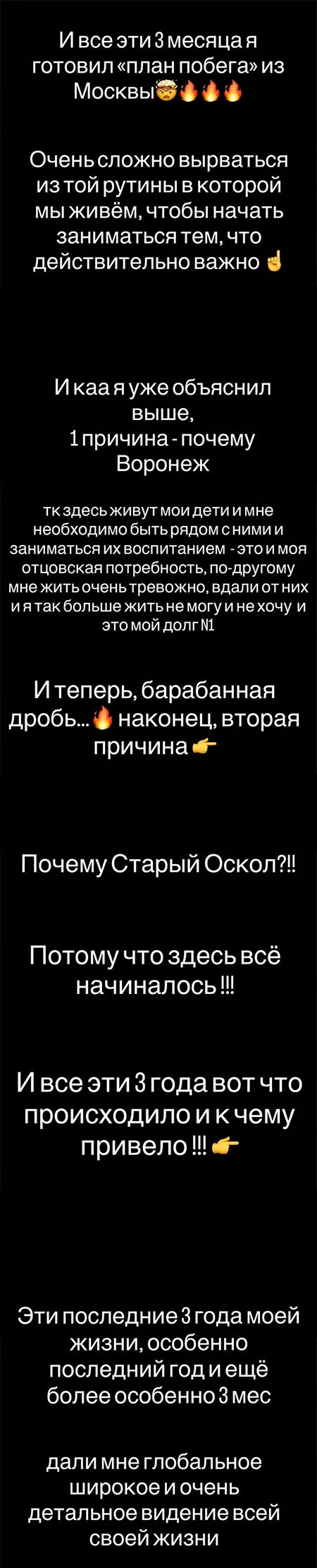 Впрочем, это явно далеко не самая главная причина его побега. Говорить об Артемовой Николай не спешит, но намекает, что буквально возродился из пепла. А последние три года его жизни, и особенно последний год стали особенно тяжелыми. К слову это как раз время, когда Субачев был женат на скандально известной выпускнице дома 2.