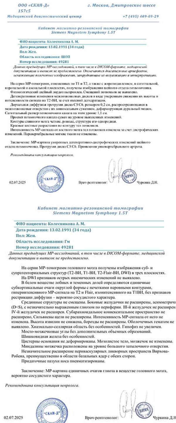 Чтобы расставить все точки над i, Стецевят опубликовала неопровержимые доказательства. Так в сети появились результаты недавнего МРТ и бланк с официальным диагнозом врача. При этом глядя на вполне довольную и счастливую Анастасию, развлекающуюся в компании бывшего мужа, кажется, что она уже успела восстановиться.