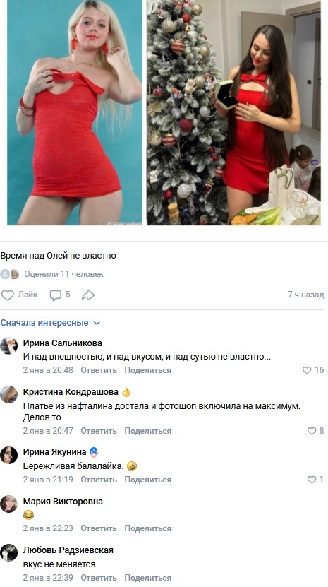 2 января 2026 года Ольгу Рапунцель высмеяли за платье времён её бурной молодости.