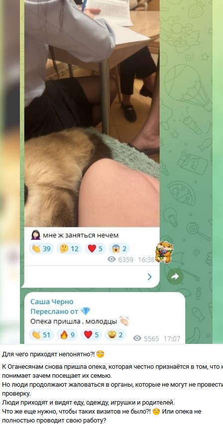 Интересно, что визит представителей органов опеки, по всей видимости, оказал положительное влияние на семейную ситуацию. Например, Иосиф Оганесян, супруг Александры, даже занялся приготовлением пищи и сварил суп. Сама Черно заявила, что провела предварительную уборку на съёмной квартире в Красногорске. Ещё недавно она не проявляла желания заниматься домашними делами в квартире, где вместе с ней проживает бывший муж, но теперь ситуация, кажется, начала меняться.