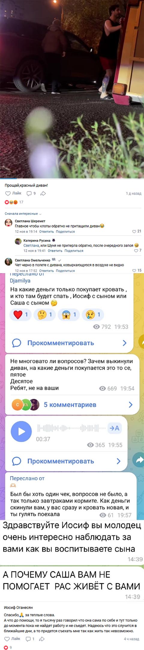 Вместо ожидаемых новостей о лечении ребёнка в интернете появились видеоматериалы, которые проливают свет на судьбу пожертвований. На кадрах видно, как Иосиф на помойке в Красногорске избавляется от старого красного дивана. Сам Оганесян уже подтвердил, что приобрёл новую кровать. Эти обстоятельства вызывают у подписчиков немало вопросов.