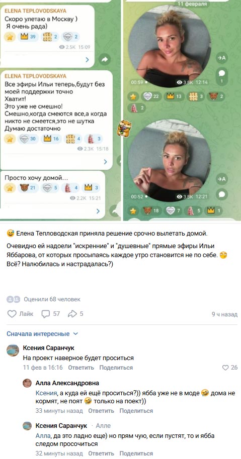 Впрочем, некоторые уверены, что Тепловодская не просто так сливается с отношений с Яббаровым. Более чем вероятно, что Лена просто боится понести ответственность наравне с Ильей, который уже успел наговорить себе на статью.