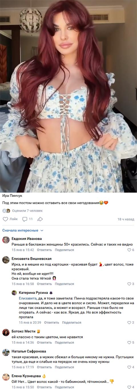 15 января 2026 года Ирину Пинчук раскритиковали за новый цвет волос.