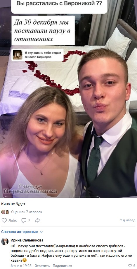 Пока не понятно, как отреагирует на такое предательство молодого любовника сама Вероника. Ведь женщина до последнего верила, что парень в нее искренне влюблен и желает сделать всё, чтобы оставаться рядом. К слову, еще недавно сам Артем намекал, что готов сделать Лысковец предложение руки и сердца.