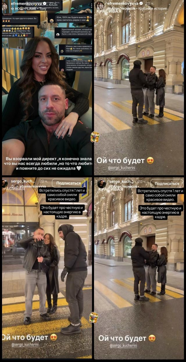 Ефременкова призналась, что ей льстит такой живой интерес подписчиков к её личной жизни. Она также отметила, что встреча с Сергеем после семилетнего перерыва оказалась для неё весьма эмоциональной и вдохновляющей. Однако, несмотря на тёплые чувства, Юлия чётко дала понять: о возобновлении романтических отношений речи пока не идёт. Ранее Юлия не раз упоминала, что поддерживает с Кучеровым общение в социальных сетях, и их связь не прервалась окончательно.
