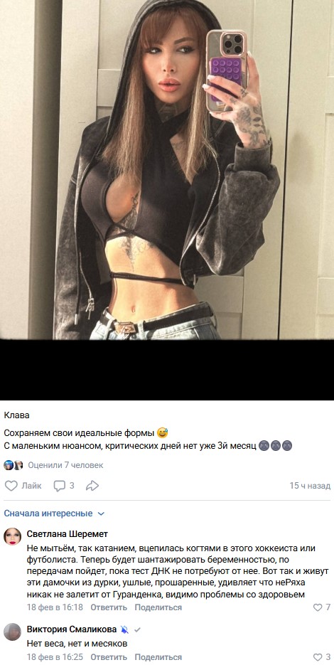 Однако в этот раз внимание подписчиков привлекли не только фотографии, но и намёки Клавы на возможное «интересное положение». Участница «Дома-2» упомянула, что у неё уже три месяца нет менструации. При этом девушка пока не раскрыла, делала ли она тест на беременность и каковы его результаты. Поклонники активно обсуждают эту новость в комментариях, высказывая самые разные предположения.