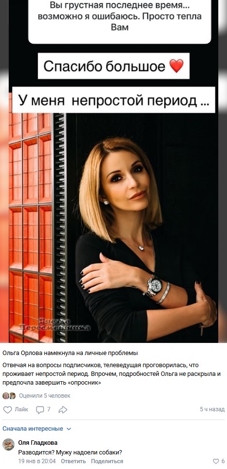 Уточнять, что именно пошло в личной жизни не так, Ольга явно не готова. По крайней мере, отвечать на вопросы на эту тему не спешит. Впрочем, у подписчиков уже появились свои интересные версии и догадки.
