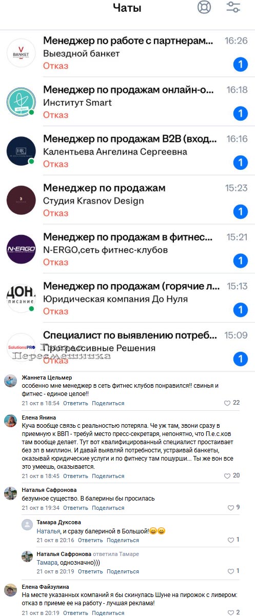 Судя по ответам на Хенхантере Саша получает одни отказы. Причем сама девушка уже согласна свести все требования к минимум, лишь бы ее взяли. К слову Саша даже попыталась трудоустроиться в фитнес-клуб, но и там ее не взяли.