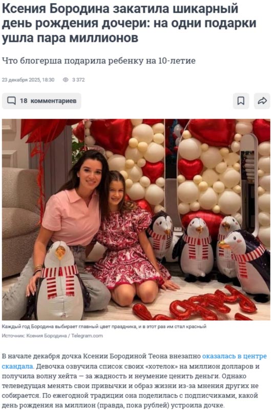 24 декабря 2025 года выяснилось, какую сумму Ксения Бородина потратила на подарки для дочери.