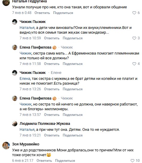7 января 2026 года Юлия Ефременкова предъявила претензии родственникам Мондезира Свет-Амура.