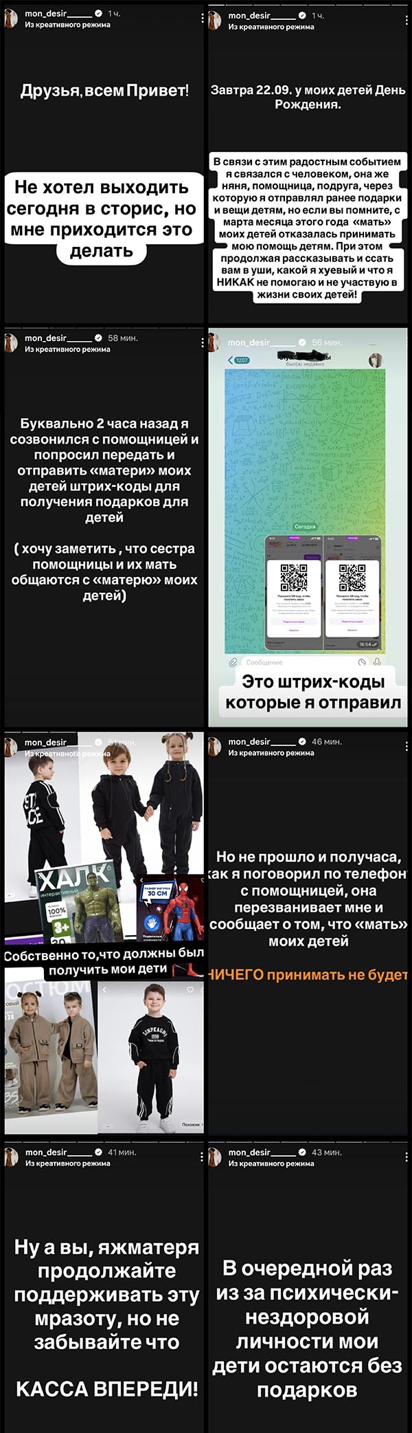 Мондезир Свет-Амур оставил сыновей Кристиана и Даниэля без подарков. Правда сам молодой отец винит во всем свою бывшую, Юлю Ефременкову. Последняя якобы отказалась принимать подарки, которые он заблаговременно заказал на трехлетие наследников в пункт выдачи Вайлдберриз. К слову, поздравить мальчиков лично Свет-Амур после ссоры с Юлей так и не решился и лично не приехал в Краснодар.